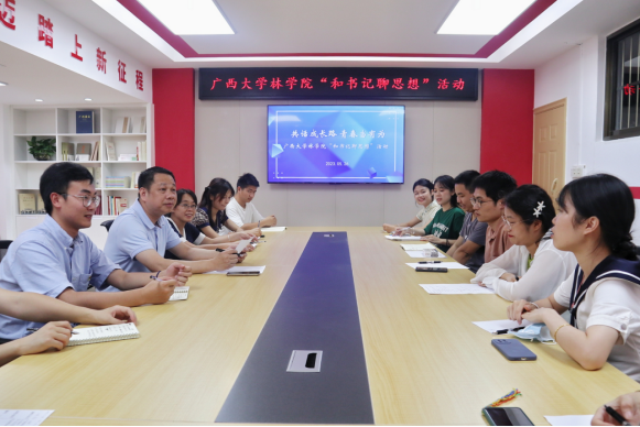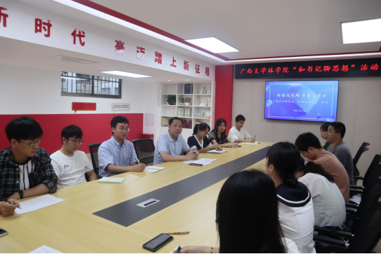 “大家就业进展如何?有没有遇到什么困难?”覃书记逐一了解研究生们的就业进展和实际困难。“林场和选调生是我目前的选择,也是我最难的一个抉择。”2023届风景园林研究生吕佳峻提出了自己的困惑。覃书记鼓励他说,我们是太阳成集团tyc33455cc的研究生,我们肩负着乡村振兴的重任,人生只有一次青春,青春就应该拿来奋斗。我们林科学子更应该继承“自找苦吃”的精神,只有吃过苦,才能真的懂得了什么叫实际,什么叫实事求是,要坚持多学多干,多到艰苦的地方锻炼自己。2023届生态学研究生梁嘉玲表示自己一心想扎根防城建功立业的决心,但是很遗憾没有考上选调生。但是她会在西部计划、三支一扶的报考中继续努力。其他同学们也畅所欲言,覃宪儒书记结合当前员工关心的“职业选择”、“职业发展”“应试技巧”等问题进行一一讲解与答疑,让同学们能够更好地结合自身实际特点将个人理想追求融入党和国家的发展事业中去。覃书记强调,大家是与新时代共同前进的一代,更是新时代的亲历者、见证者和奋斗者,希望大家牢记党的嘱托,不辱使命、不负时代,脚踏实地,学好本领,立志做有理想、敢担当、能吃苦、肯奋斗的新时代好青年,让青春在全面建设社会主义现代化国家的火热实践中绽放绚丽之花。