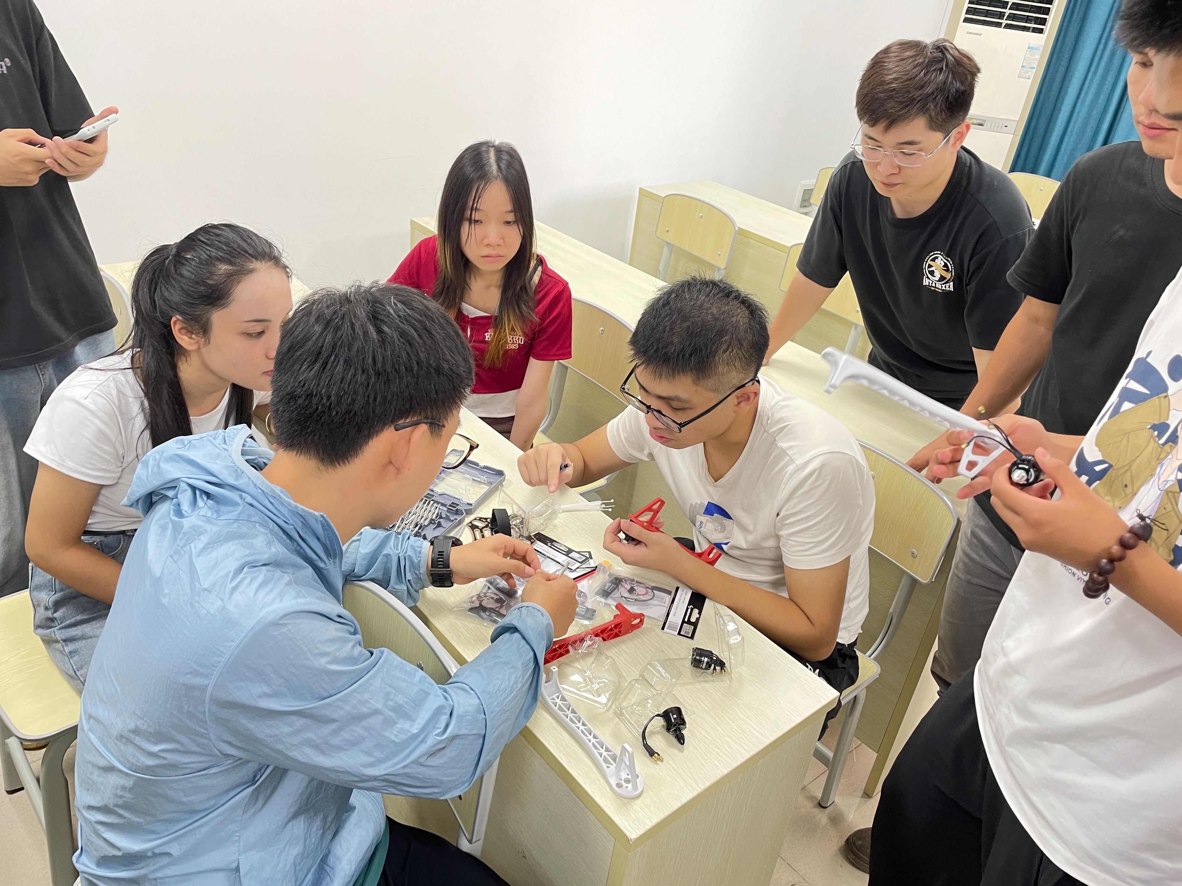 活动期间,指导老师苏凯对遇到困难的成员进行耐心的解答,帮助大家解决困难的同时还激发了他们的思考和探索精神,使同学们更深入地理解无人机组装过程中的关键环节,学习到更多实用技巧和经验。在小组成员的通力合作下,历时3个多小时,完成了第一台无人机的组装。同学们纷纷表示,此次活动不仅可以掌握无人机装卸技能,丰富自己的学科技术知识,还为未来的专业学习与职业规划增添新渠道。