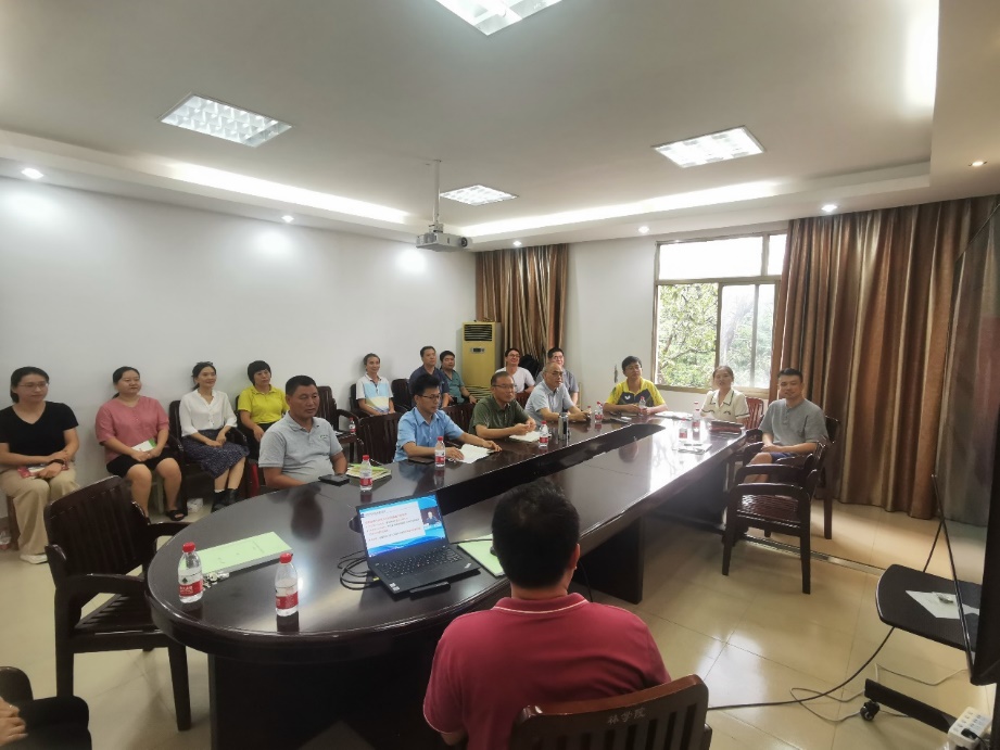 首先,由《基础生态学综合实验》课程负责人尤业明副教授做总结交流,从课程设计、课程思政元素挖掘、实习地点选取、实习方案、实习成果和存在的问题等方面做了详细的介绍,课程选取了三种生态系统,包括:森林生态系统、湿地生态系统、喀斯特人工石漠化修复生态系统,开展了针对植物、动物、土壤等方面的实习内容;同时以当地不同生态修复模式如何助力当地实现“绿水青山”及乡村振兴强联系,实地走访使员工更直观地理解中国特色社会主义生态文明建设的必要性与意义;最后就在实践课程中如何进行课程思政等方面进行了课程反思与改进。