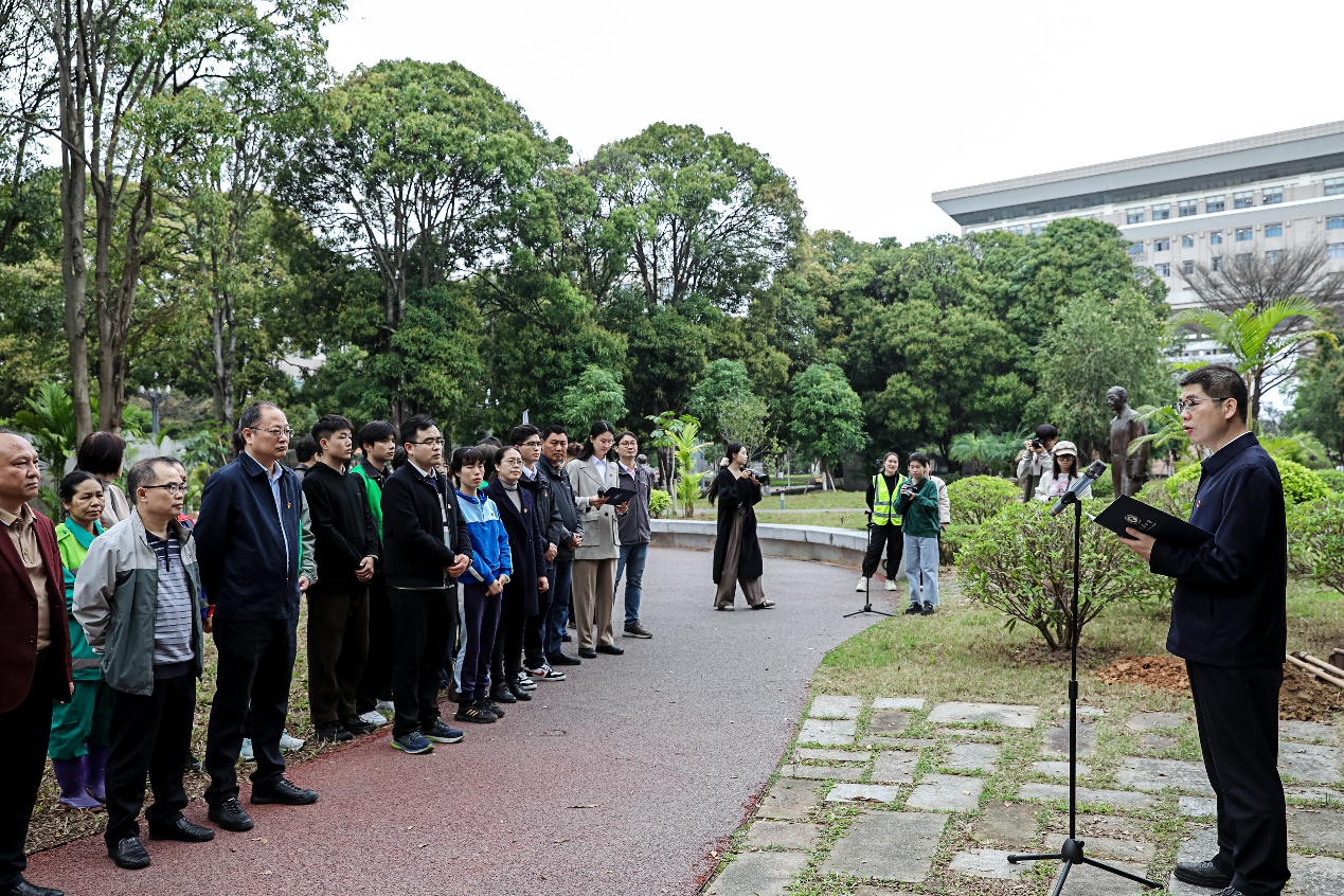 凌绍明指出,陈焕镛教授为广西林业发展立下了不朽功勋,其研究成果为广西植物资源的保护和利用奠定了坚实的基础。今天种植“焕镛木”活动,正是以行动致敬他的远见。希望广大师生们以陈焕镛教授为榜样,积极投身到国土绿化和生态环境保护之中,做生态文明建设的实践者、推动者。