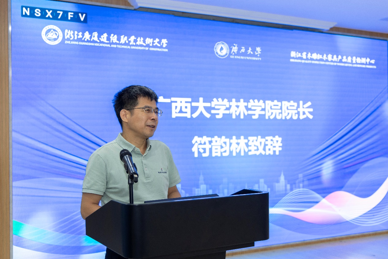 会议分为开幕式和标准研讨会两部分。开幕式上,浙江广厦建设职业技术大学党委委员、副董事长王兴代表承办方致辞。公司经理符韵林教授指出,现行标准自2013年实施以来,在规范木材鉴定、促进木材贸易与森林资源保护等发挥了重要作用,但随着科学技术的发展,标准在检验技术、检验内容、检测方法等发生了变化,需要修订。