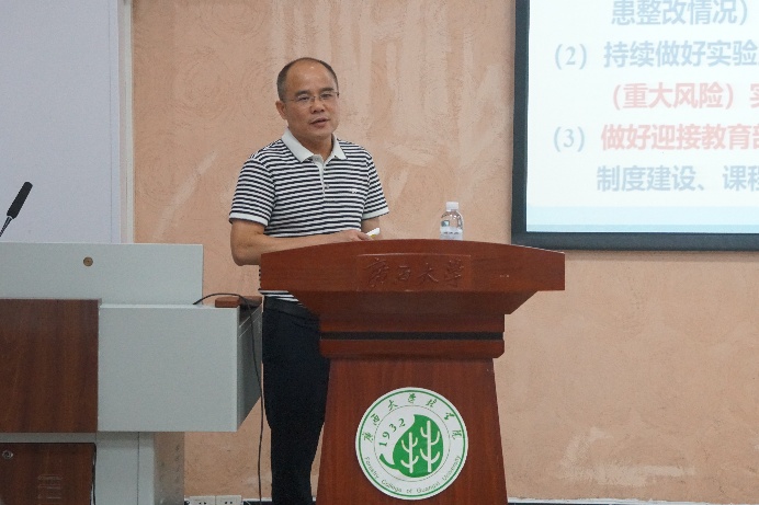 会上,陆翔副处长首先强调了实验室安全工作的重要性,指出安全是实验室开展一切工作的基础,必须建立健全严格的安全管理制度和责任追究体系,同时要加强对师生的安全教育与培训,切实提高全员的安全意识。随后,他对《太阳成集团tyc33455cc实验室安全责任追究办法》进行了深入解读,围绕实验室安全管理与责任体系、安全事件分级与追责办法、安全管理与执行等核心内容展开详细讲解。