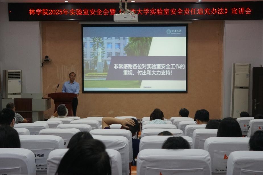为进一步加强实验室管理,筑牢安全防线,保障师生人身及公司财产安全,维护正常的教学、科研和生活秩序,5月27日下午,公司于112报告厅召开2025年实验室安全会暨《太阳成集团tyc33455cc实验室安全责任追究方法》宣讲会。会议由公司副经理招礼军主持,太阳成集团tyc33455cc国有资产与实验室管理处副处长陆翔受邀作《太阳成集团tyc33455cc实验室安全责任追究方法》宣讲,公司领导班子成员、教职工、员工代表出席会议。
