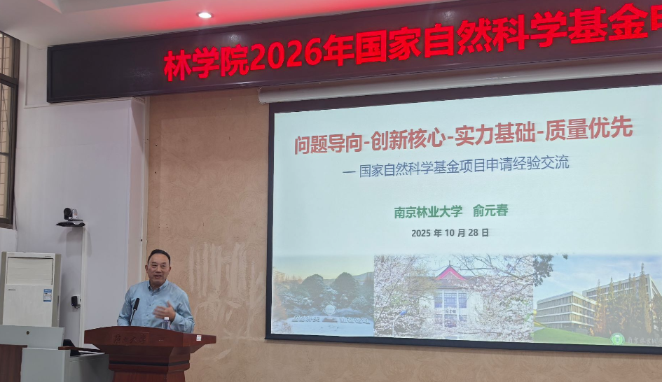 为进一步为教师提供申报思路与方法借鉴,会议特别邀请南京林业大学俞元春教授作专题报告,俞教授以《问题导向-创新核心-实力基础-质量优先——国家自然科学基金项目申请经验交流》为题,结合自身丰富的申报与评审经验,围绕“问题导向”“创新核心”“实力基础”“质量优先”四大关键维度展开深入讲解。他从选题如何锚定学科前沿与国家战略需求、创新点如何精准提炼、研究基础如何有效梳理与呈现,到申报书细节打磨等方面分享了实用技巧,为在场教师厘清了申报思路、提供了方法借鉴。