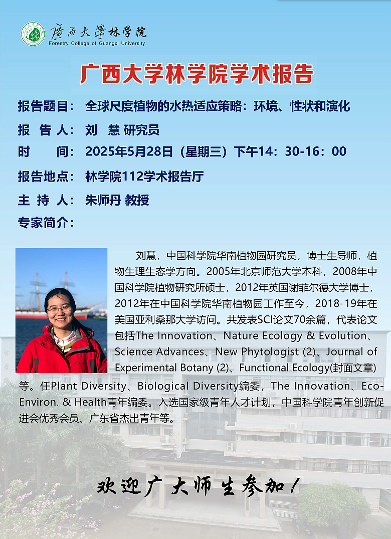 学术报告:全球尺度植物的水热适应策略:环境、性状和演化