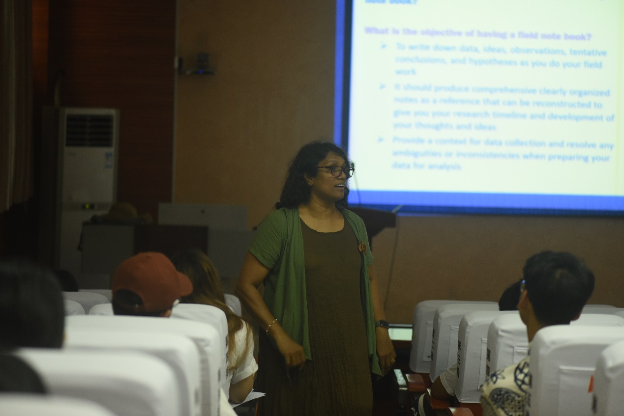 Uromi Manage Goodale教授主要就三个方面展开报告:1.Key competencies self assessment(关键能力的自我评估)。2.Time management skills self assessment and goal setting(时间管理技能:自我评估和目标设定)。3. Practical skills for laboratory and field work, especially focusing on keeping good notes and records(实验室和野外工作的实践技能,特别是注重如何保持良好的实验室笔记和记录)。