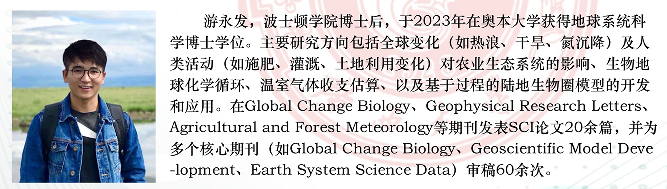 2024年6月13日,美国波士顿公司游永发博士后受邀开展现代农林信息技术专题讲座。本次报告以“Dynamics of Crop Production and Greenhouse Gas Balance in a Changing Environment: Data-Driven Systems Approach for Sustainable Agriculture in the United States”为题,以线上和线下同时进行的方式开展,公司相关教师、研究生共计30余人参会,苏凯老师为邀请联系人、报告主持人。
