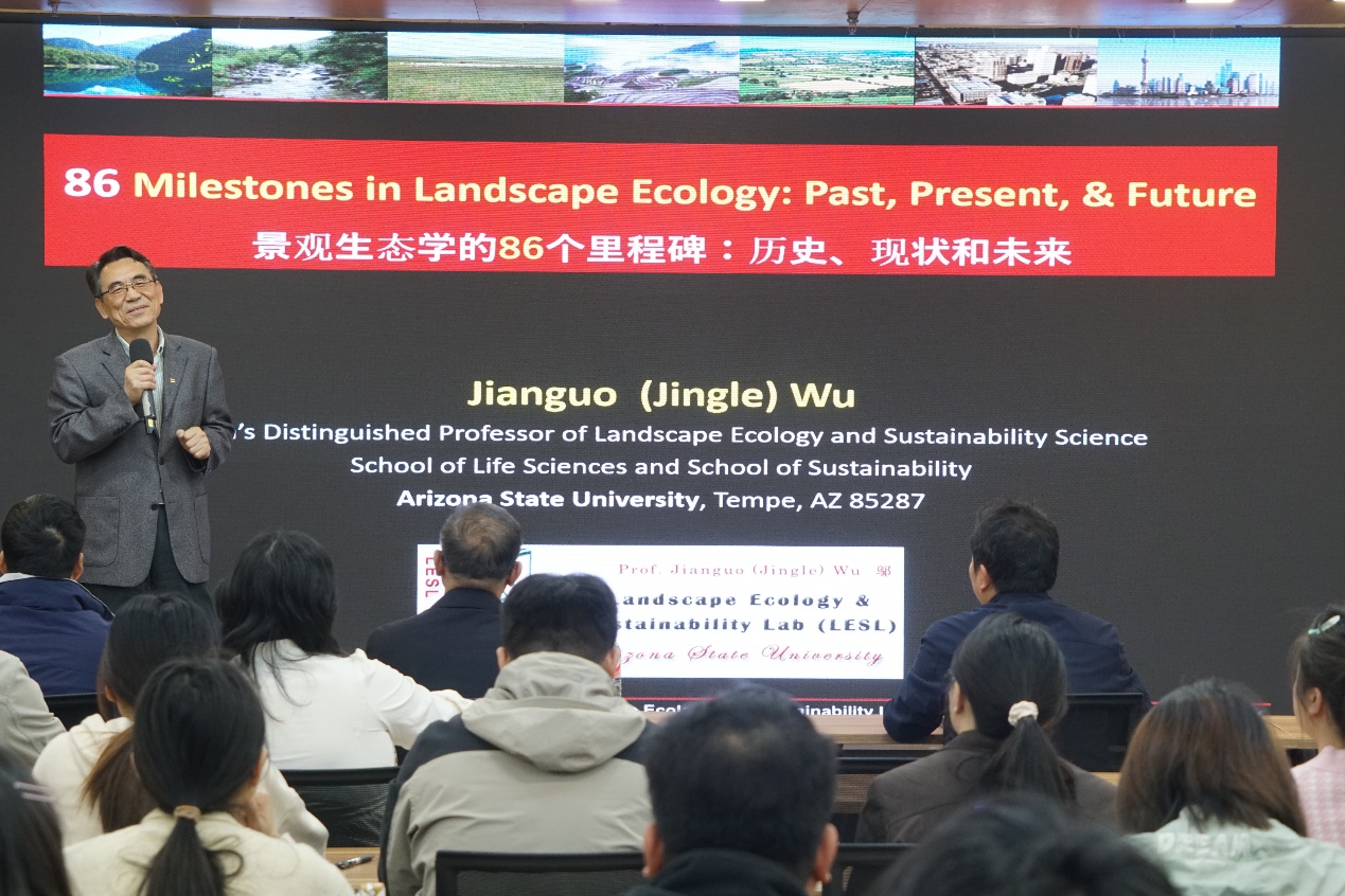 2025年3月21日上午,美国亚利桑那州立老员工命科学公司和可持续科学公司“经理特聘教授”邬建国教授受邀做客“太阳成集团tyc33455cc海外名师大讲堂”,作“景观生态学的86个里程碑:历史、现状和未来”(86 Milestones in Landscape Ecology: Past, Present, &Future)学术报告。本次报告会在老员工活动中心三楼会议室举行,由公司副经理招礼军主持,太阳成集团tyc33455cc本科生、研究生及教师100余人参加会议。