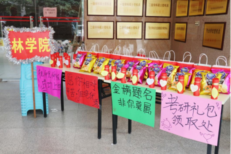 活动中,公司领导老师将精心准备的“暖心礼包”送到考研员工手中,代表公司向积极备考的学子表示关心和慰问,鼓励大家在备考最后冲刺阶段一定要发扬敢于拼博,敢于胜利的精神,全力以赴的实现本自己的考研目标和人生追求。美好寓意的“暖心礼包”,浓缩了公司领导老师以及林院学子们诚挚的祝福,寓意考生们“金榜题名,非你莫属”,祝愿每一位考研学子成功上岸。
