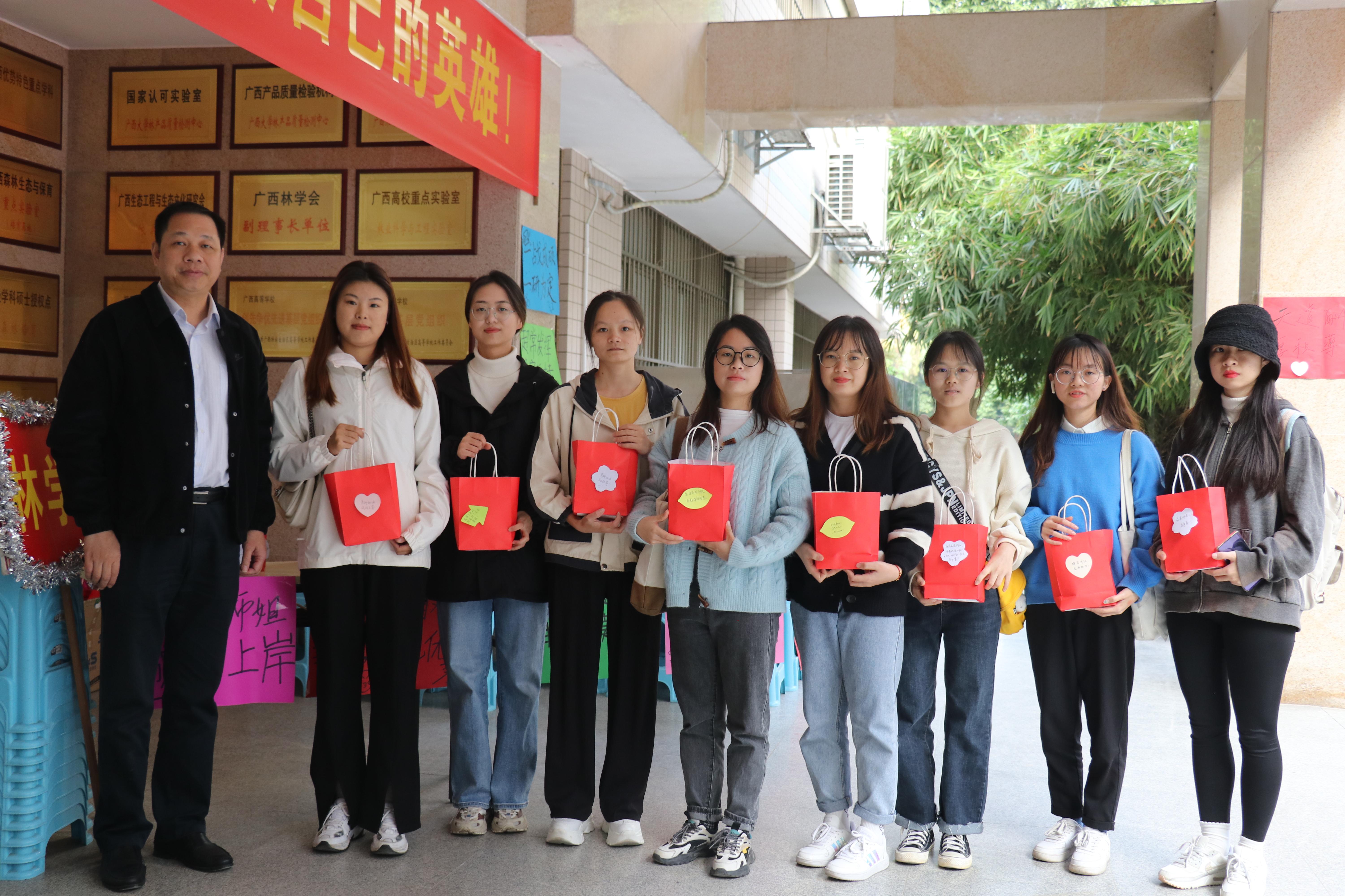 为缓解2022届考研学子的备考压力、坚定考研信心。12月17日下午,林公司党委书记覃宪儒、党委副书记徐丽以及师生代表们在公司南门、考研员工宿舍为考研学子送上公司精心准备的“暖心礼包”,为考研学子加油助力。