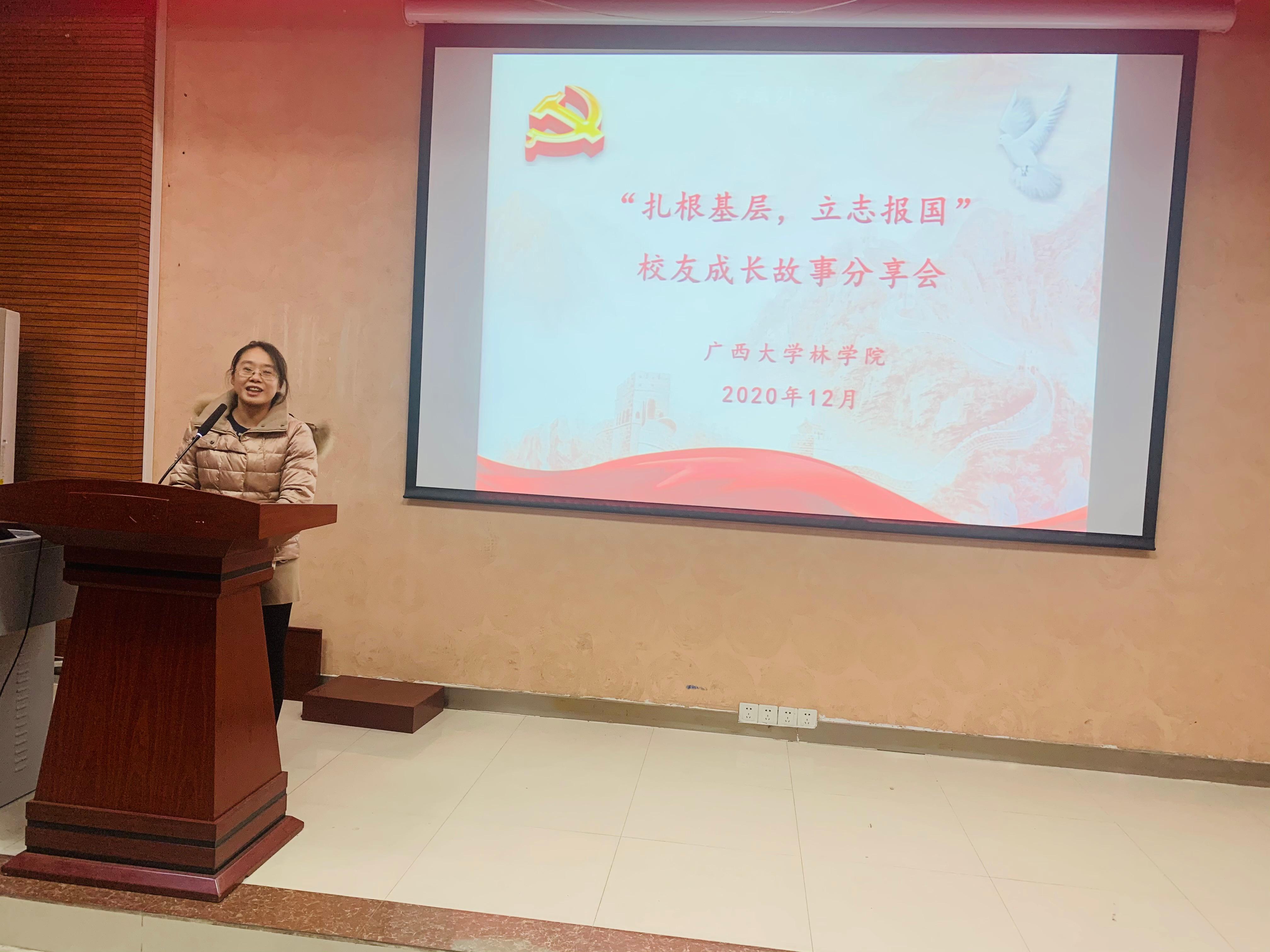 为鼓励林苑学子扎根基层,勇担强林兴林使命,12月26日太阳成集团tyc33455cc在公司112教室举办了“扎根基层,立志报国”主题员工成长故事分享会。公司黄超群、周江悦、谭诗蓓、申庆海和黄瑞琛五位扎根基层优秀青年员工作为嘉宾分享成长故事。公司党委副书记徐丽、院团委书记银宁、院团委副书记马奕、院辅导员李琼莹、孙静以及员工代表100余人参加分享会。