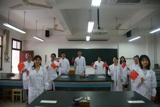 随着优美的旋律响起,快闪活动拉开序幕。党员教师们在教室、实验室、气排球场等多处挥动着国旗,高声歌唱《我和我的祖国》、《没有共产党就没有新中国》等耳熟能详的红色歌曲,尽情抒发了爱党爱国的真挚情感。恢弘而热烈的歌词将现场气氛推向高潮,吸引了不少师生驻足观看。