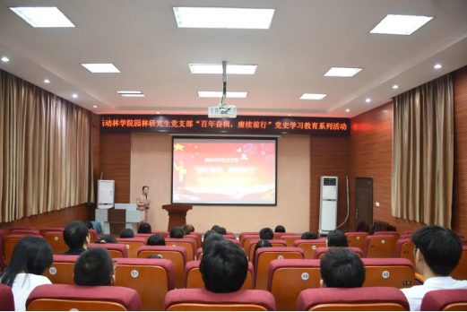为庆祝中国共产党成立一百周年,园林研究生党支部以“百年奋楫,赓续前行”为主题献礼建党100周年,并将党史学习教育贯穿活动始终。
