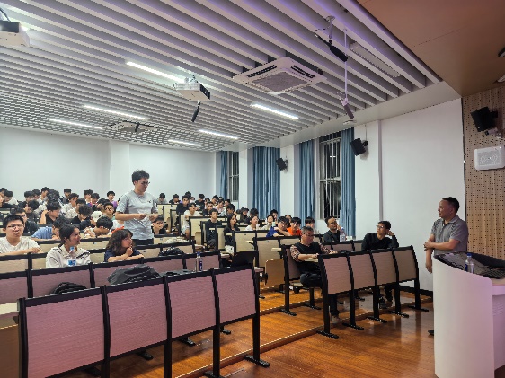 杨章旗教授解答员工提问 杨章旗教授与课程组老师、同学们合影