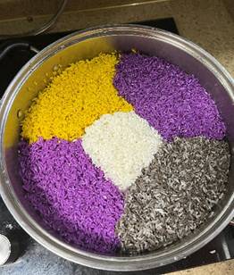 太阳成集团tyc33455cc直属教工党支部在广西三月三节日里开展了“品尝壮乡美食,共谱民族团结情”的主题党日活动,党员们亲手制作壮族地区特色美食“五色糯米饭”和“艾糍粑粑”,它们不仅是壮乡的传统美食,更是壮、汉等多个民族文化交融的表现。五色糯米饭,是广西壮族等民族的传统风味小吃,五彩缤纷,鲜艳诱人,每年农历三月初三或清明节时节,广西各族人民普遍制作五色糯米饭,因糯米饭一般呈黑、红、黄、白、紫五种色彩而得名,寓意吉祥如意、五谷丰登。艾糍粑粑,是一道传统的小吃,外表是深绿色的、里面的馅或是豆沙或是碎花生的甜糍粑,带着一种特殊的艾草清香,一般在清明节,寒食节食用。通过制作美食,激发了党员参与民族文化传承的积极性,在愉快的氛围中得到了民族传统文化的熏陶和体验。